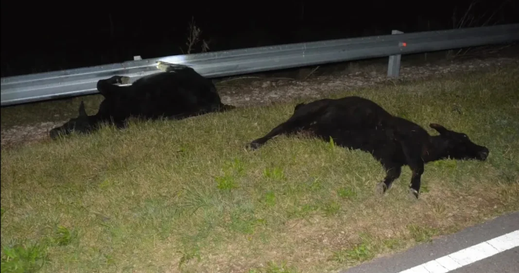 Como consecuencia del episodio, uno de los animales murió en el lugar y otro resultó herido, mientras que el resto se dispersó fuera de la calzada.