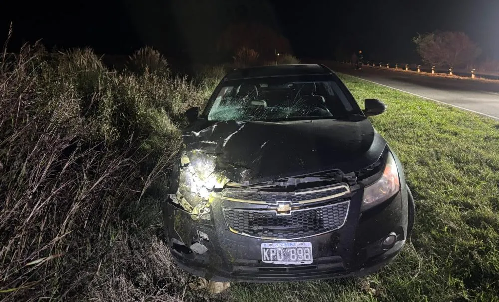 El vehículo impactó contra varios animales y sufrió daños de consideración en su parte frontal derecha.