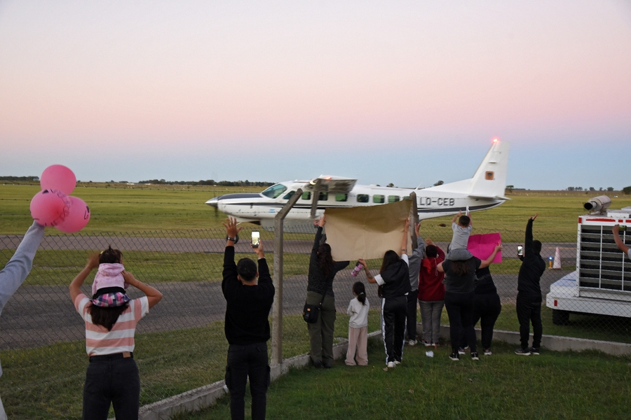 Los abuelos, bisabuelos, primos, tíos y allegados de la familia se ubicaron detrás del alambrado que separa la zona de despegue y aterrizaje con el estacionamiento. Una ambulancia se acercó al hangar del Gobierno provincial y la familia se subió. El momento más emotivo se vivió cuando, antes de emprender su traslado, el vehículo del Ministerio de Salud estacionó frente a los conocidos y Shaira, Maximiliano y Ambar descendieron. La pequeña recibió aplausos y arengas para afrontar los estudios que se realizará en el hospital Favaloro.