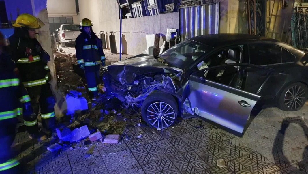 (General Pico) – Un conductor, con una alta graduación alcohólica en sangre, siguió de largo en una esquina del barrio Molino de General Pico y derribó un tapial. El auto se estrelló contra el frente de un comercio y sufrió severos daños.