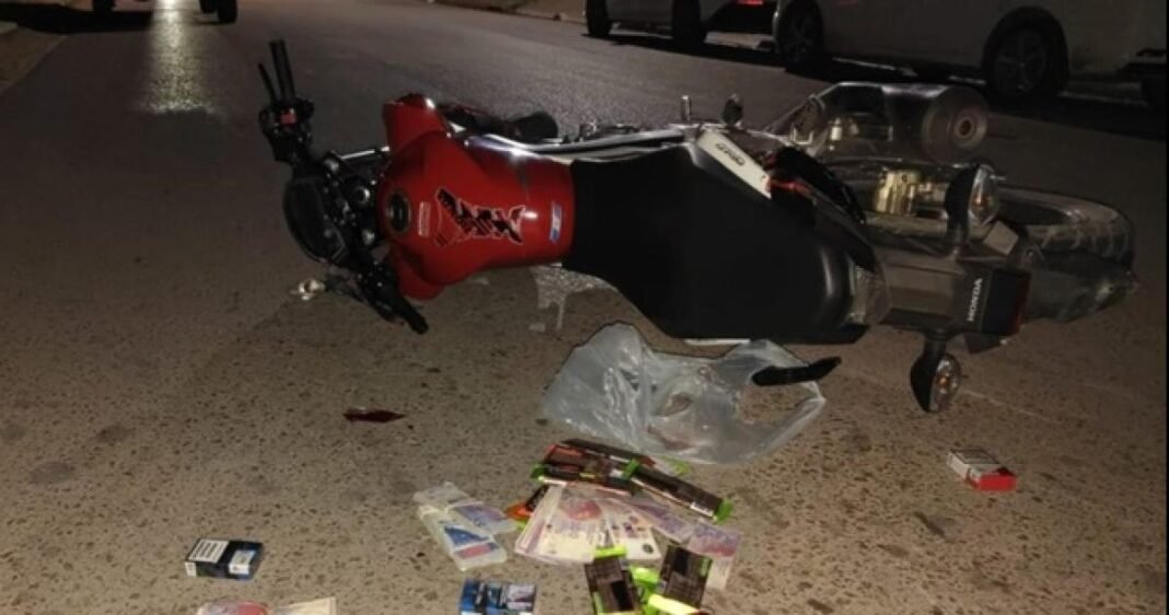 Tras ser alertados, los efectivos iniciaron una persecución por varias calles de la ciudad que culminó en la calle Liberato Rosas, donde la moto con los sospechosos colisionó con un automóvil Toyota Yaris. En ese momento, uno de los asaltantes fue detenido, mientras que su cómplice logró escapar.