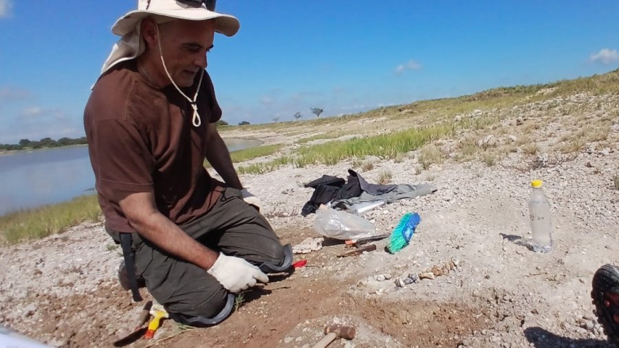 Personal del Museo Provincial de Historia Natural rescató restos de mamíferos del Mioceno tardío en los márgenes de una laguna en Rolón. El hallazgo fue posible gracias a la denuncia de un vecino y se encuentra bajo investigación en los laboratorios de la institución.