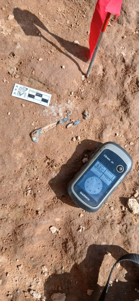 Asimismo, se registraron otros dos sitios señalados por el denunciante, cuyos materiales no fueron extraídos debido a su estado de conservación y dispersión. No obstante, se georeferenciaron mediante GPS para futuras intervenciones.