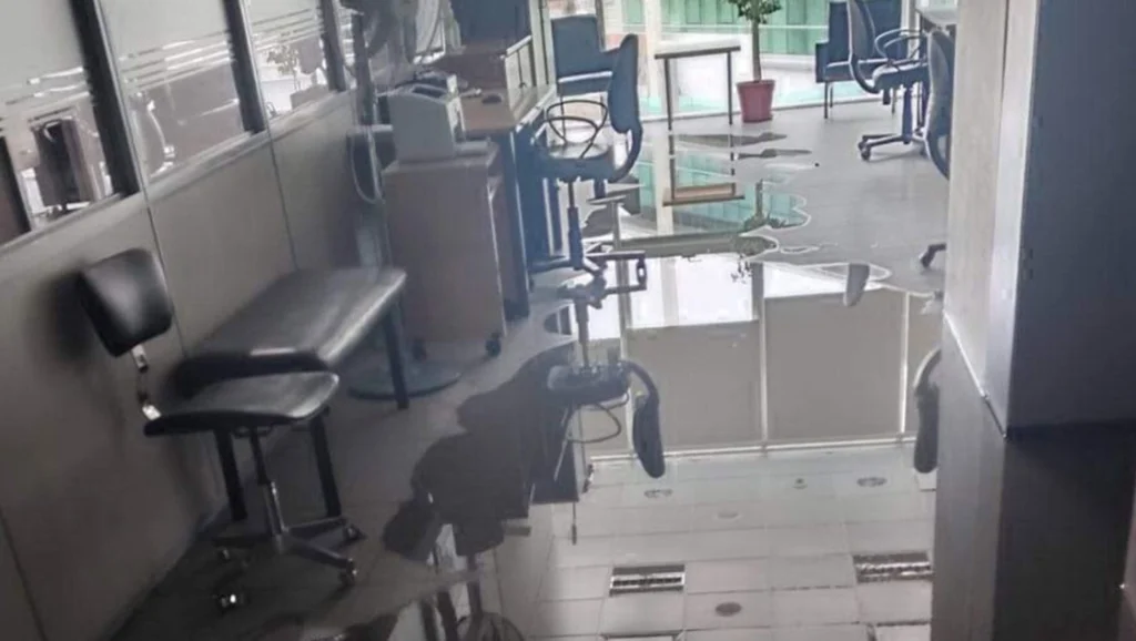 La tormenta del sábado, con lluvia y fuertes vientos, hizo que el granizo tapara las canaletas de los techos de los edificios y el agua ingresara a ellos desde los pisos más altos y llegara hasta el subsuelo. Como consecuencia del fenómeno meteorológico excepcional hubo desprendimientos de cielorraso y daños por goteras en equipos informáticos y en distintas oficinas.