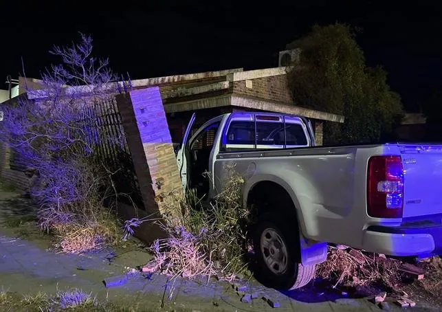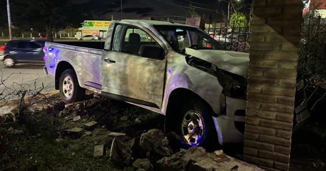 Un siniestro vial se registró este miércoles por la tarde en la rotonda del Changomás sobre Avenida Perón, cuando una pick-up Chevrolet S10, conducida por un hombre, terminó dentro del patio delantero de una vivienda ubicada en la intersección con calle Utracán.