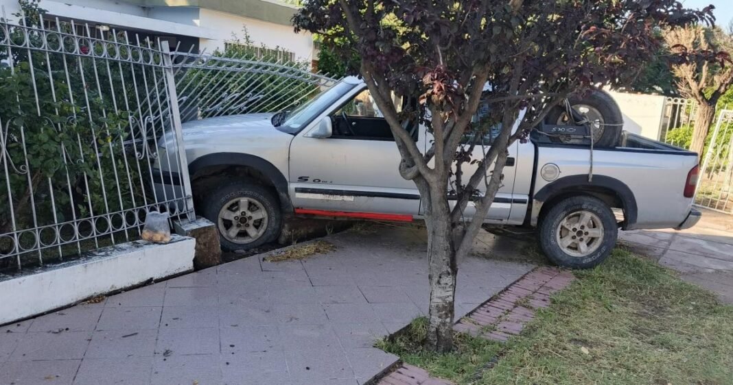 Una camioneta Chevrolet impactó contra una reja, derribándola y quedando a pocos metros de ingresar a una vivienda.